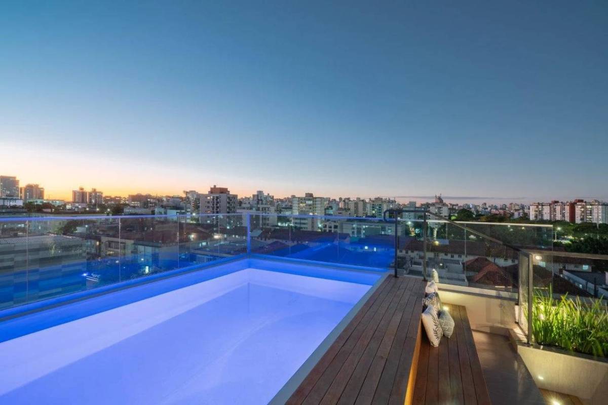 Apartamento mobiliado com garagem , conçeito contemporâneo, no coração do menino deus , penúltimo andar, vista definida , todo sol Norte , condomínio com piscina, home office, espaço para churrasco. Uma raridade na região.