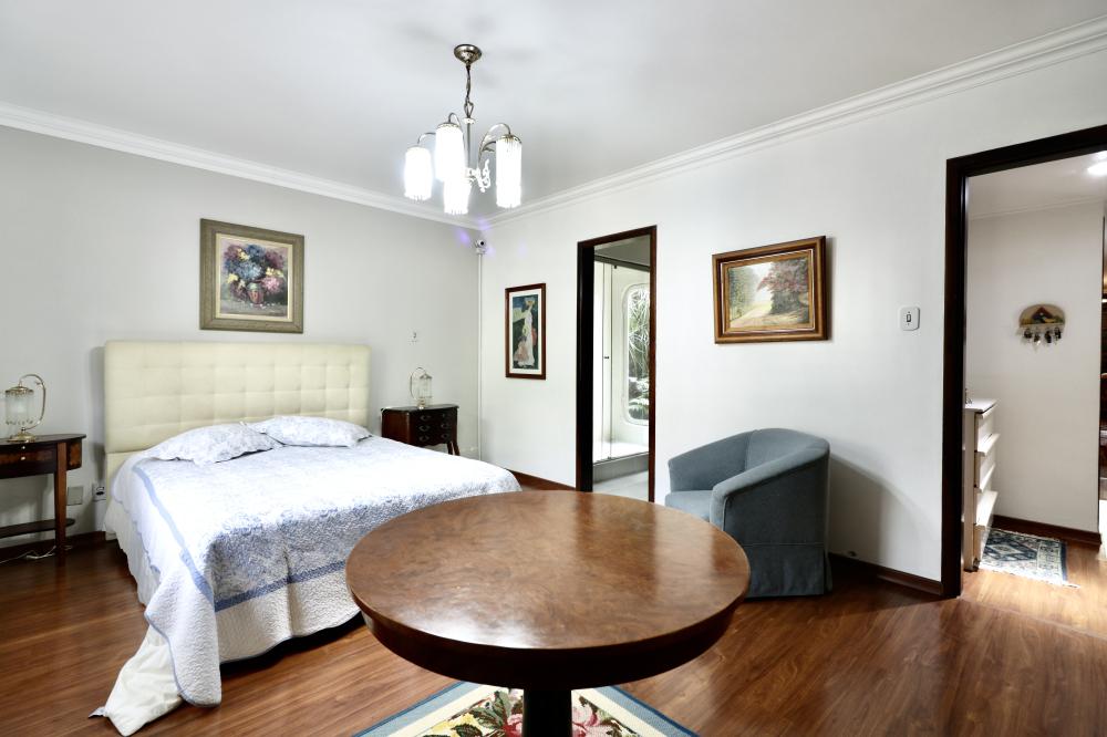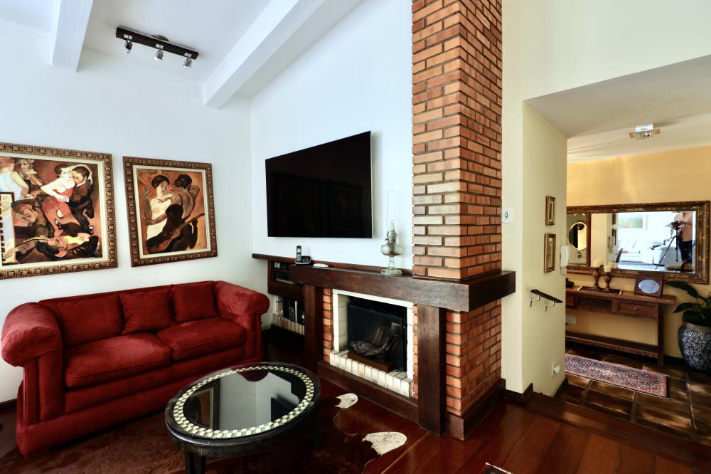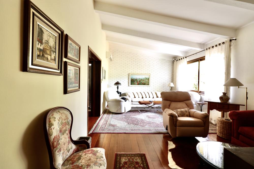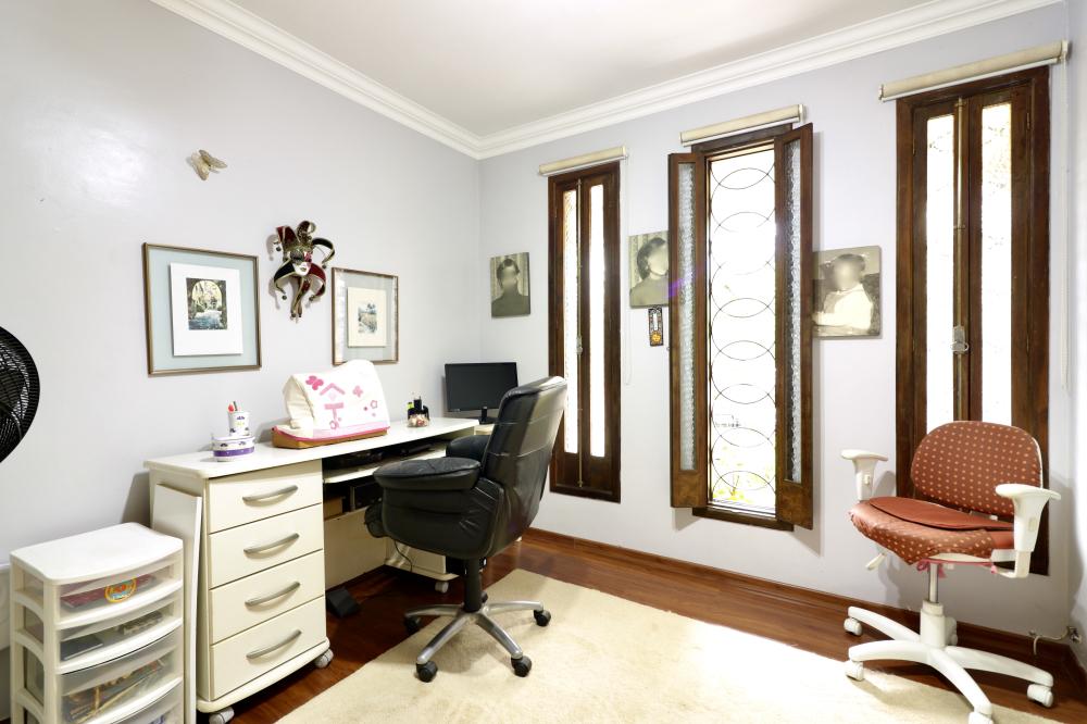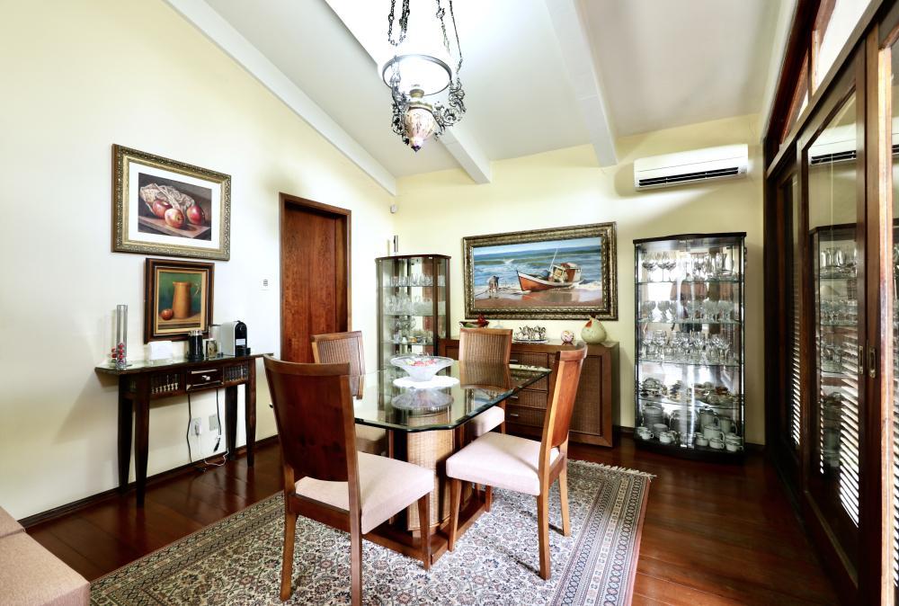 O imóvel tem 3 quartos, sendo 1 suíte, possui 5 banheiros, 2 salas e 4 vagas de garagem.